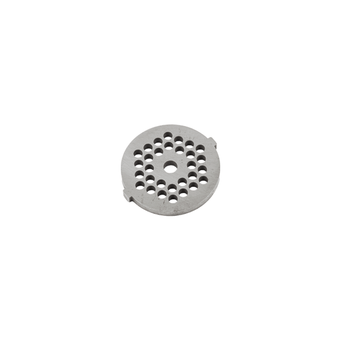 Сетка мясорубки - это диск круглой формы, перфорированный отверстиями разного количества и размеров.