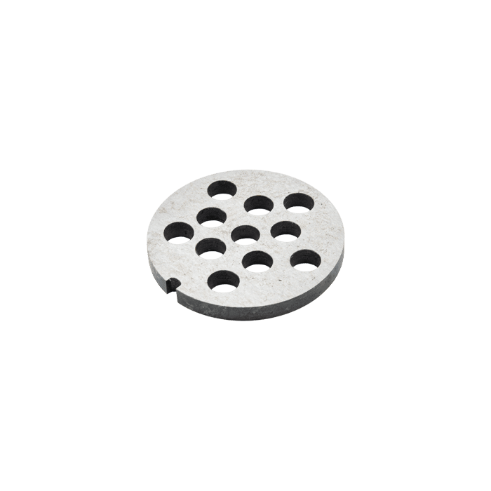 Сетка мясорубки - это диск круглой формы, перфорированный отверстиями разного количества и размеров.