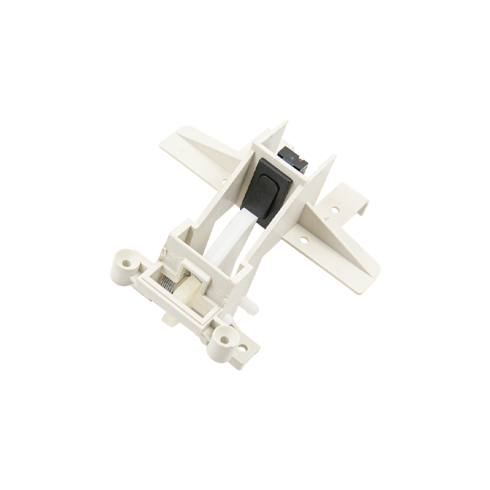 Когда дверца закрывается, защелка входит в специальный паз на корпусе машины. Пружина обеспечивает