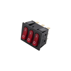 Кнопка сетевая Кнопка мережева потрійна KCD3-303 28х34 мм 9 контактів 15А (2-позиційна) зі світлодіодом 24.KCD3-3039 86,29 ₴ Кнопка потрійна мережева KCD3-303 • 2-позиційна • напруга та струм - ~250 В (6 А), ~125 В (10 А) • підключення - 9 клем 6,3 мм • наявність підсвічування - є • наявність пильовика - немає • розмір посадки - 28х34 мм Практично будь-який електричний ланцюг сучасного побутового електроприладу чи обладнання оснащується таким органом управління, як... У Кошик