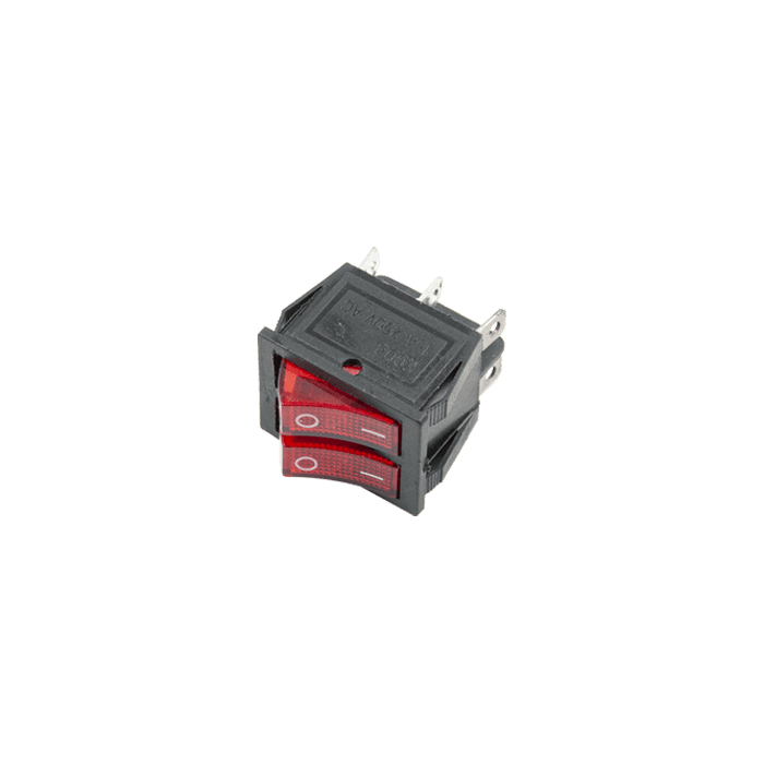 Кнопка мережева подвійна 22*28 мм 6 контактів 16А (2-позиційна)