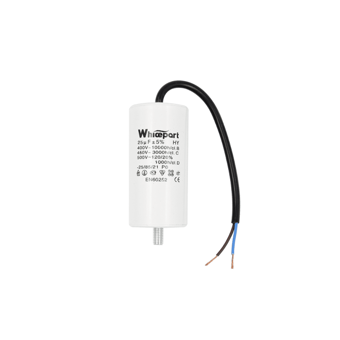 Конденсатор CBB60-G 25 мкФ, 450 В, Whicepart (провід + болт)